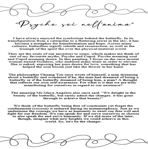 *Eos: Is wearing a tiara that has a Morning Star on it and was known as one of her symbols. Day is breaking behind Eos in this painting as this was her job as a deity. Eos is also wearing the colour Saffron a herb that was associated with her. Some feathers can be seen floating nearby her, as Eos is always depicted on vases with large white wings. Lastly Eos has a droplet on her necklace as morning dew was also meant to represent her presence.